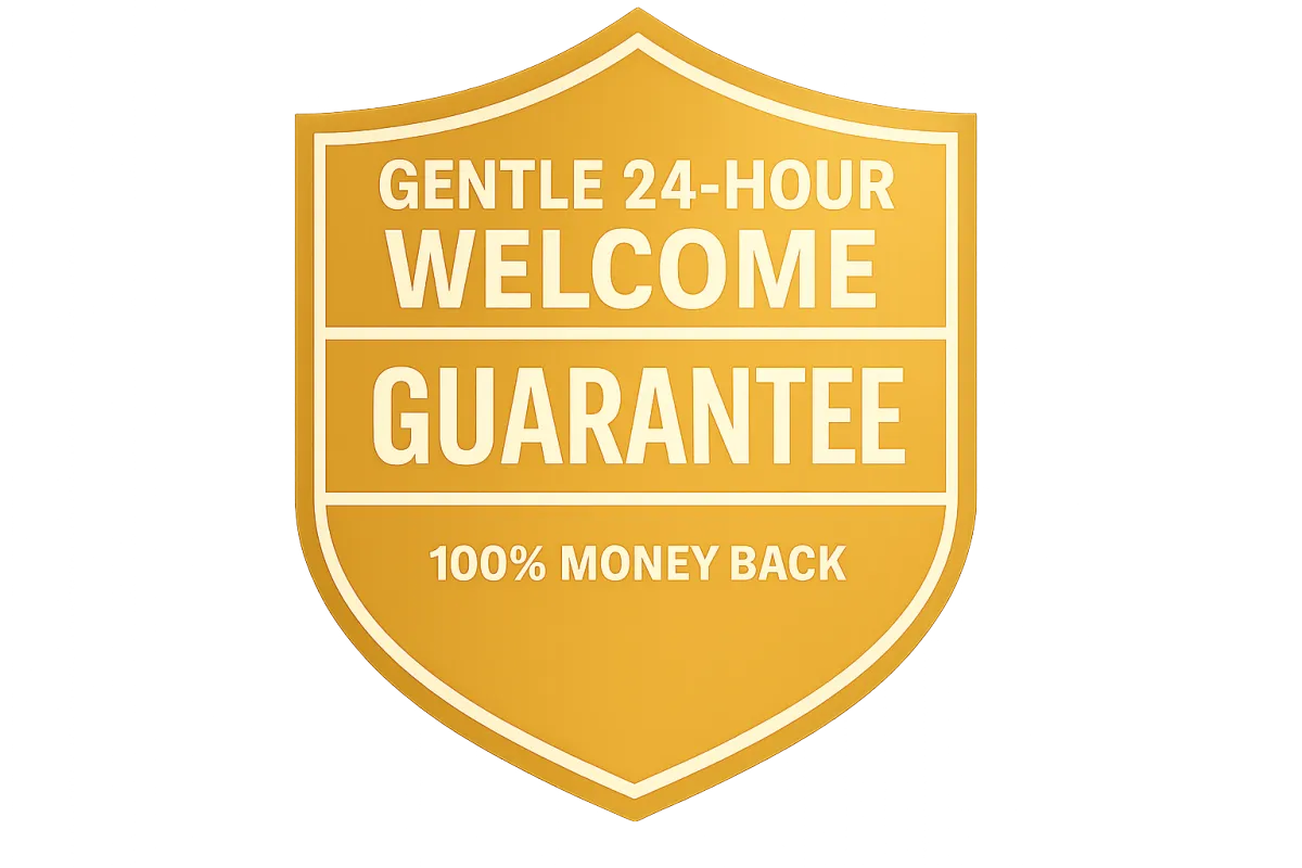 You’re covered by the Gentle 24-Hour Welcome Guarantee, so you have space to explore and feel into this experience.